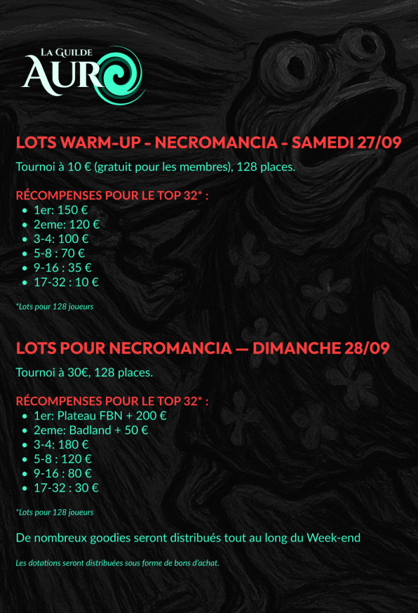 Pour Necromancia, Dimanche, lots pour 128 joueurs: